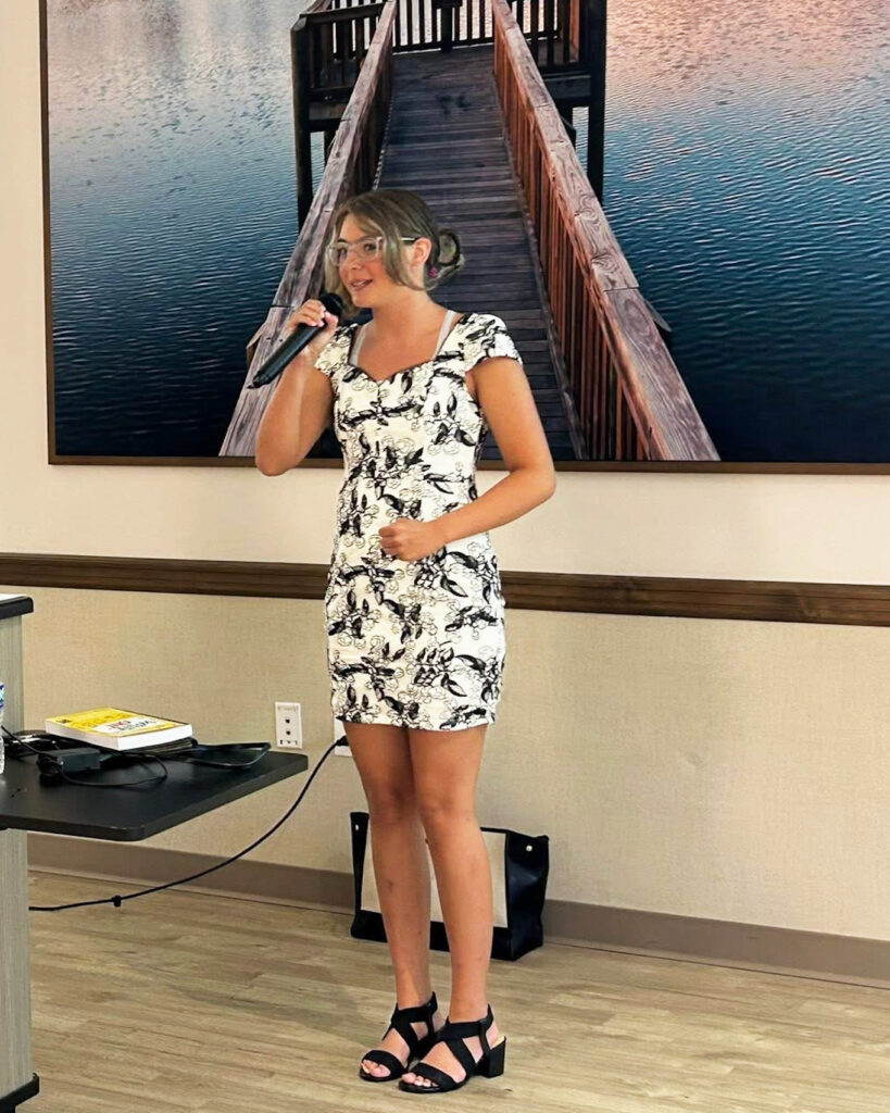 After Faith sang, a member from a different organization stopped her and asked her to sing the National Anthem at their event as well! So, three weeks later, Faith sang at the 50th Anniversary of the Garden Club at Palm Coast. If you are interested in singing the National Anthem for events in the future, let us know so that when we are asked, we can reach out to you.